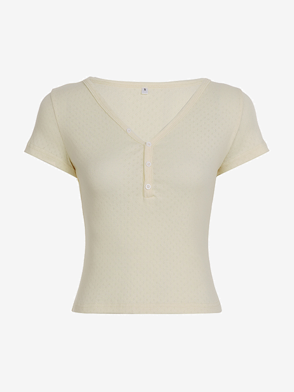 Cuello en V texturizado y mangas cortas