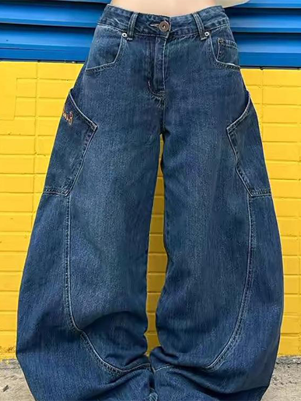 Vaqueros boyfriend con diseño de cimitarra y bolsillos grandes