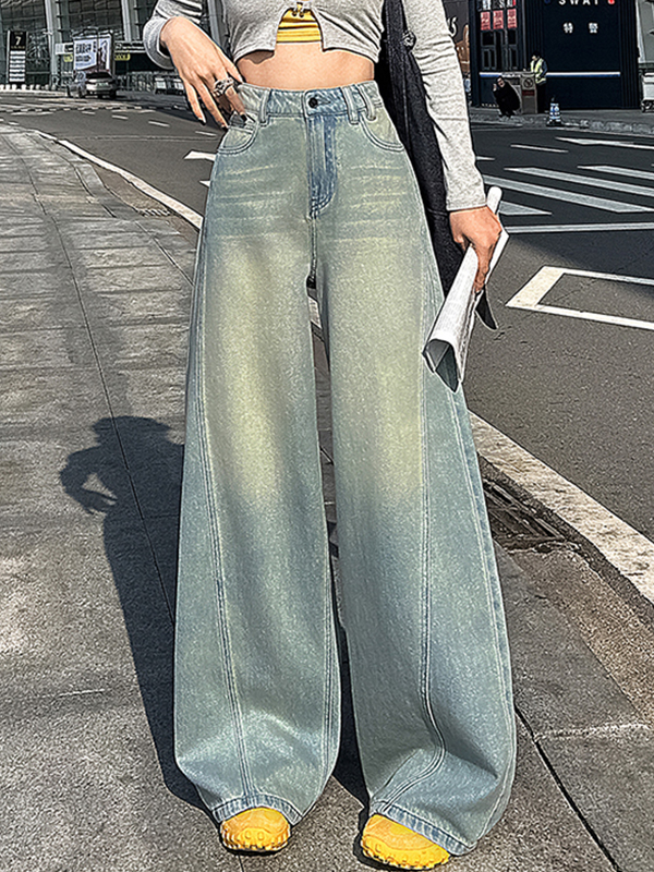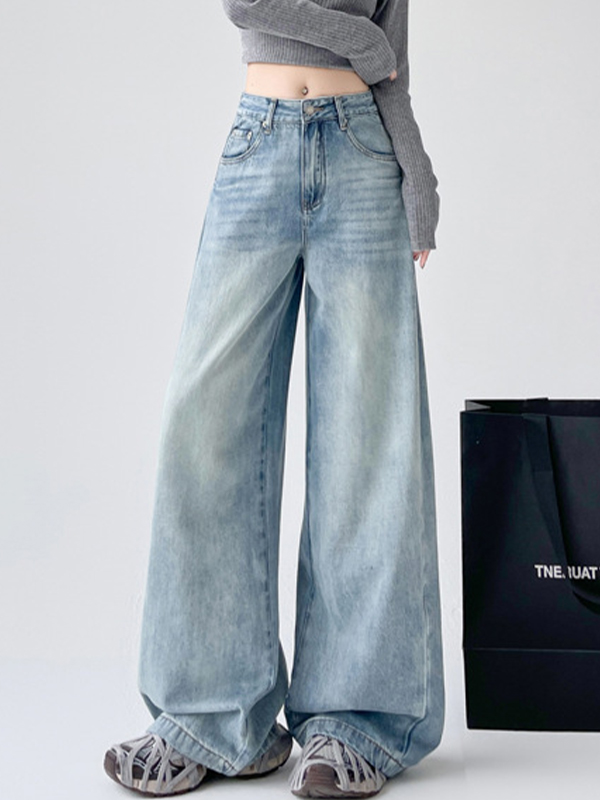 Vaqueros de pierna ancha con bordes sin rematar y lavados