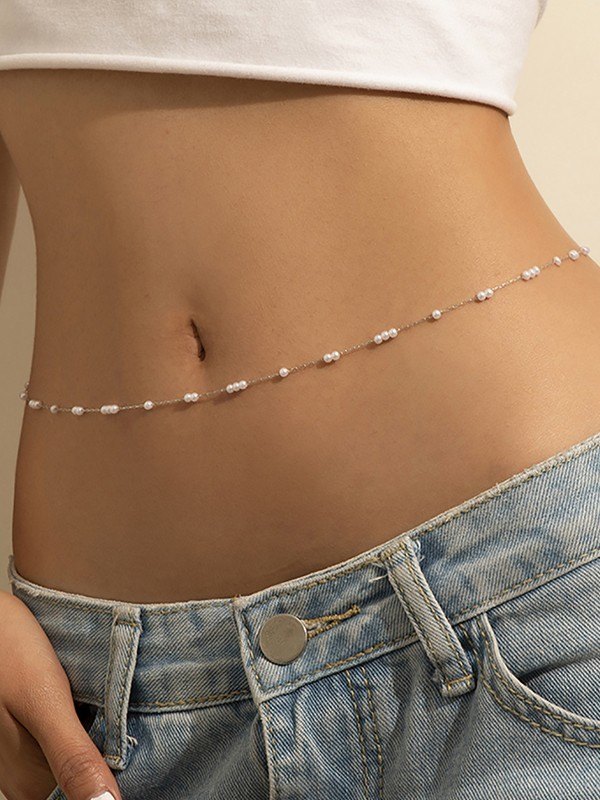 Cadena para el vientre adornada con perlas de imitación