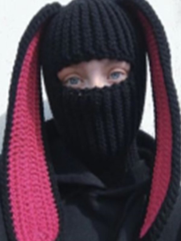 Pasamontañas de punto de ganchillo conejito