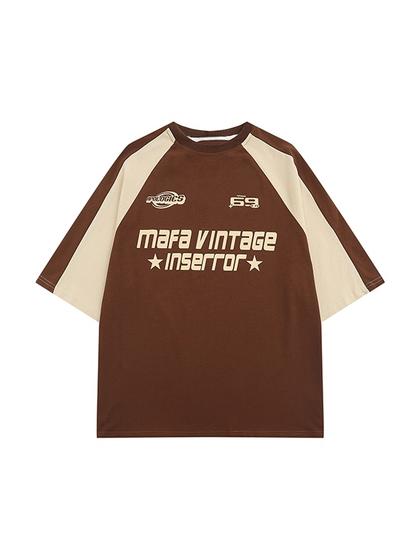 Camiseta de manga corta raglán con estampado de letras y bloques de color para hombre