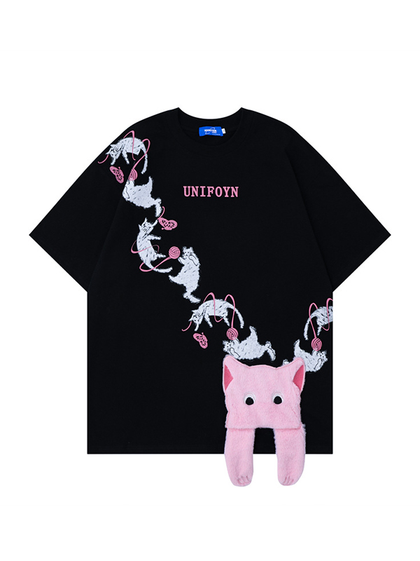 Camiseta extragrande de manga corta con estampado de gato