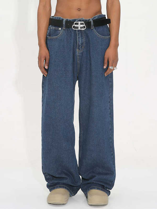 Vaqueros holgados con estampado de bambú lavado de estilo industrial pesado estilo retro americano