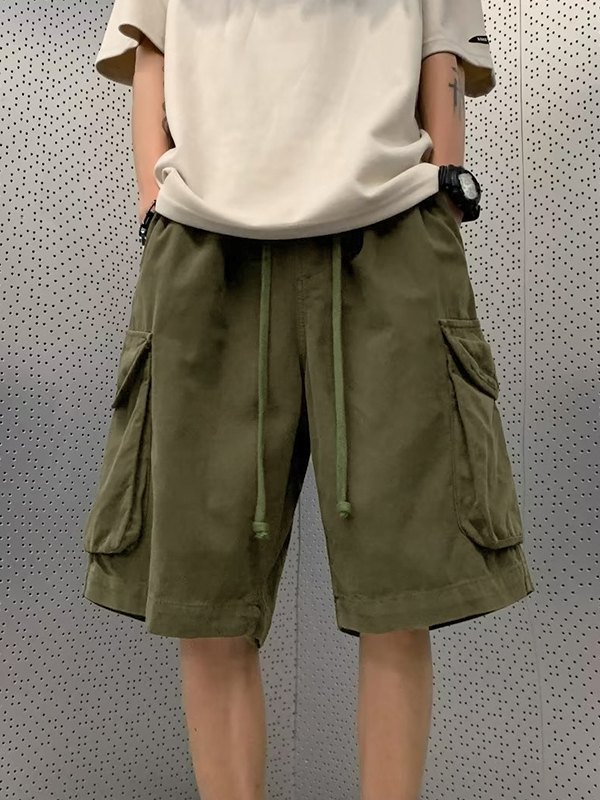 Pantalones cortos de pierna ancha sueltos lavados simples retro para hombre