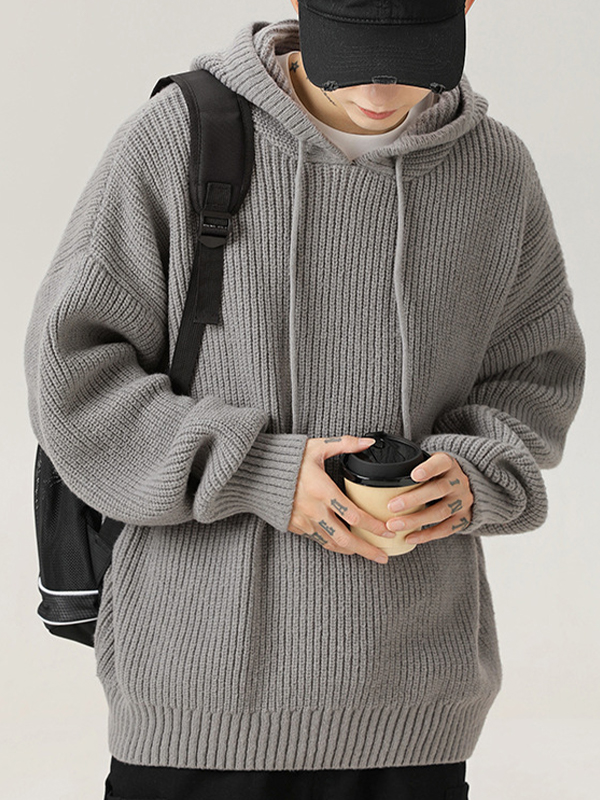 Sudadera con capucha extragrande con cordón de algodón de color liso para hombre