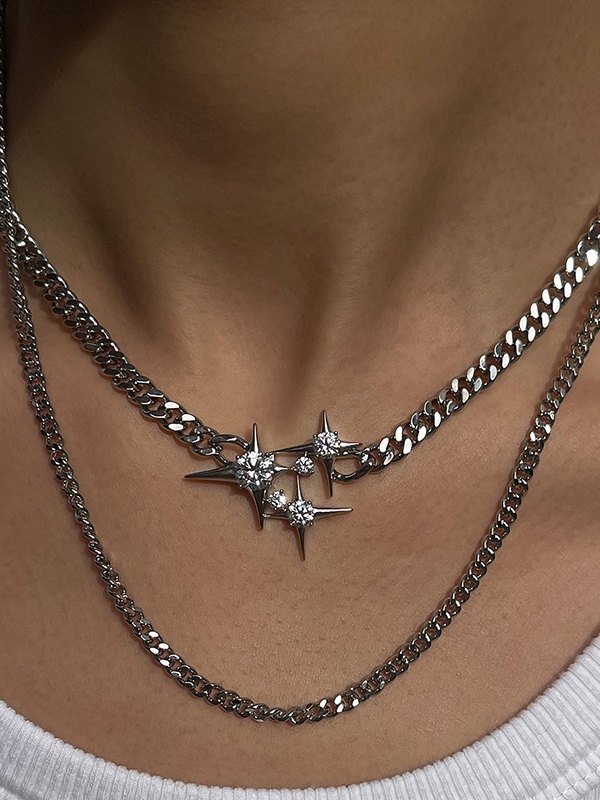 Collar con colgante de estrella de diamantes de imitación de cadena de doble capa
