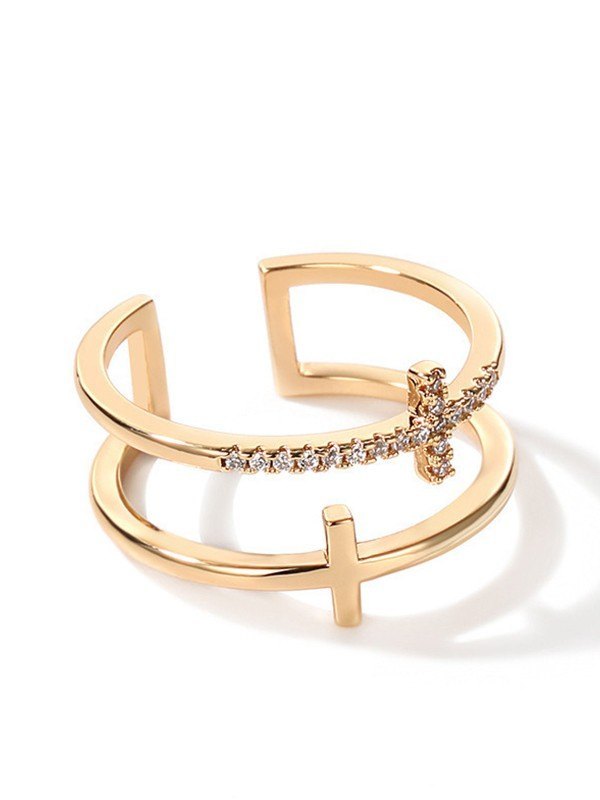 Anillo de puño cruzado doble con diamantes de imitación