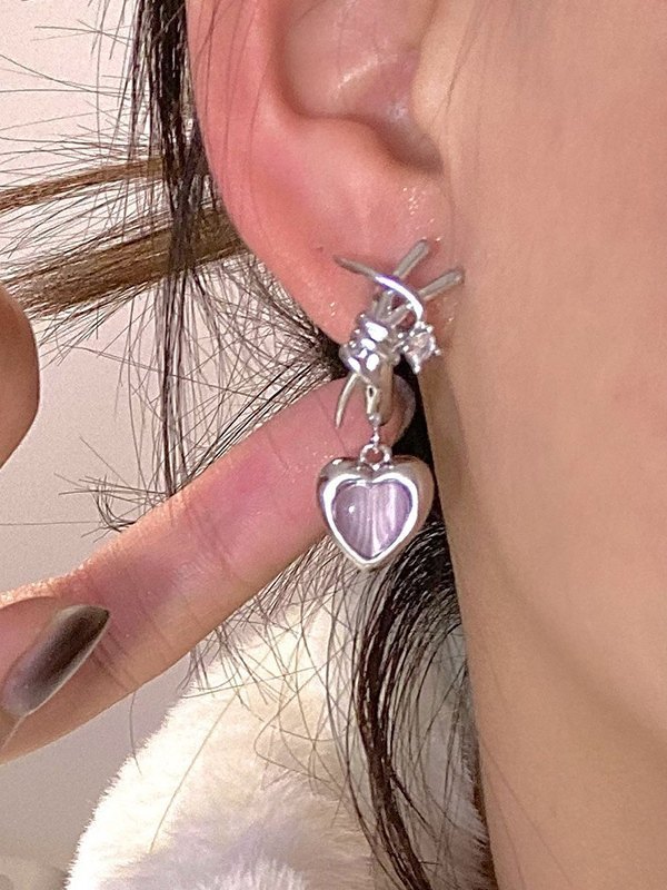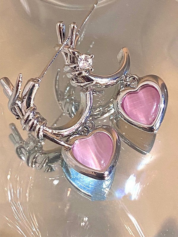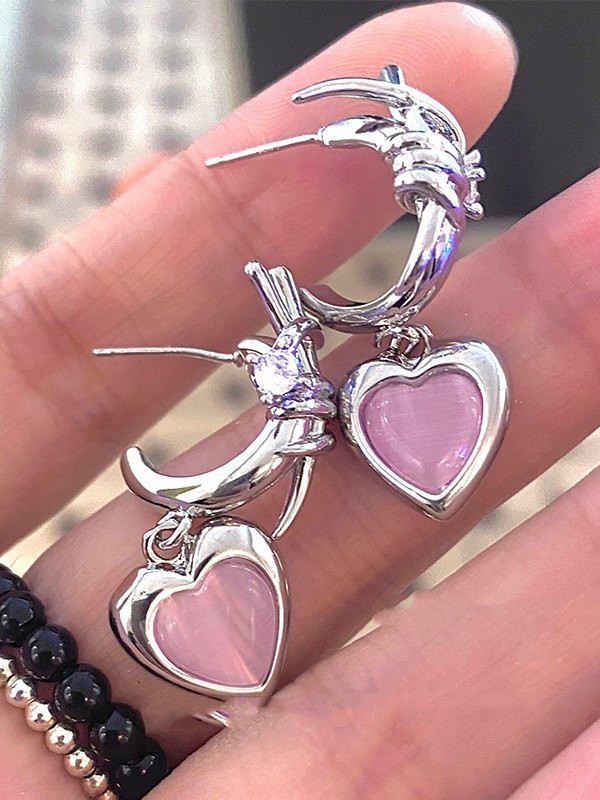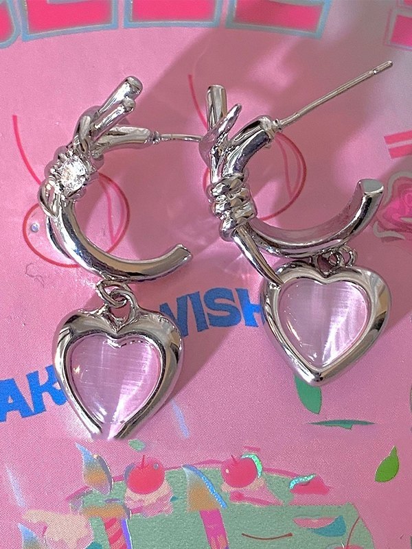 Aretes con dije de corazón de piedra