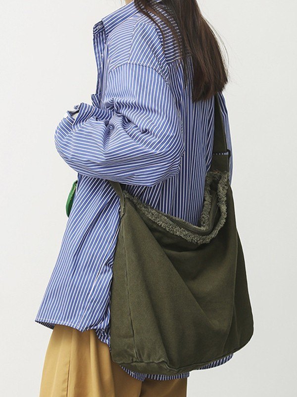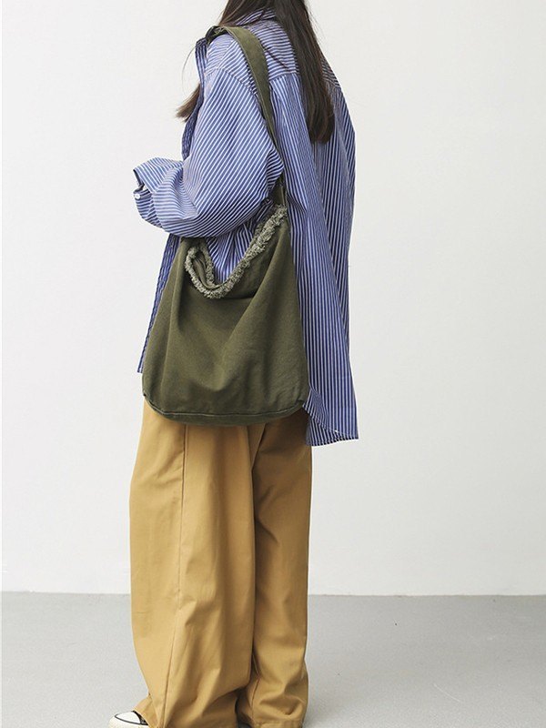 Detalles : Tiene un ribete deshilachado sin rematar, con bandolera ajustable, bolsillos interiores y diseño de cierre con cremallera metálica.