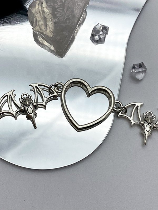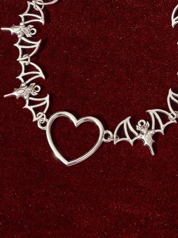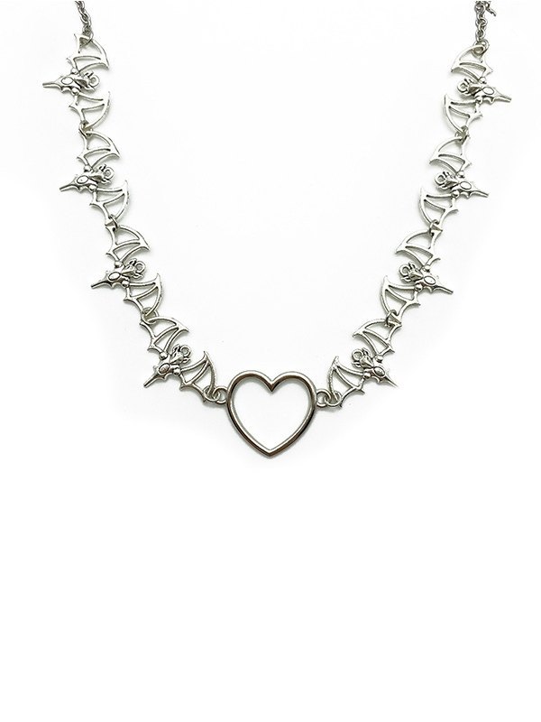Collar con colgante de corazón de murciélago gótico