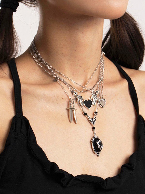 Conjunto de collar con colgante mixto punk de 5 piezas