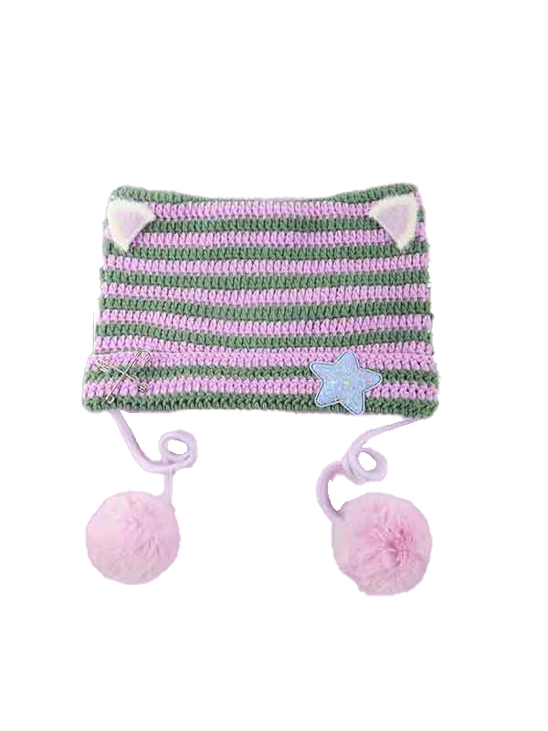 Gorro con rayas y diseño de gato
