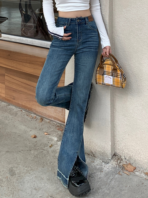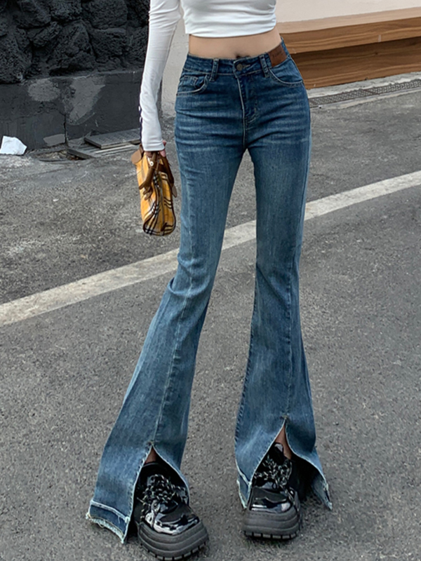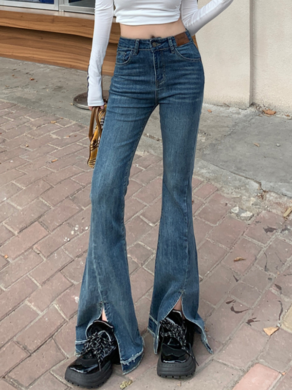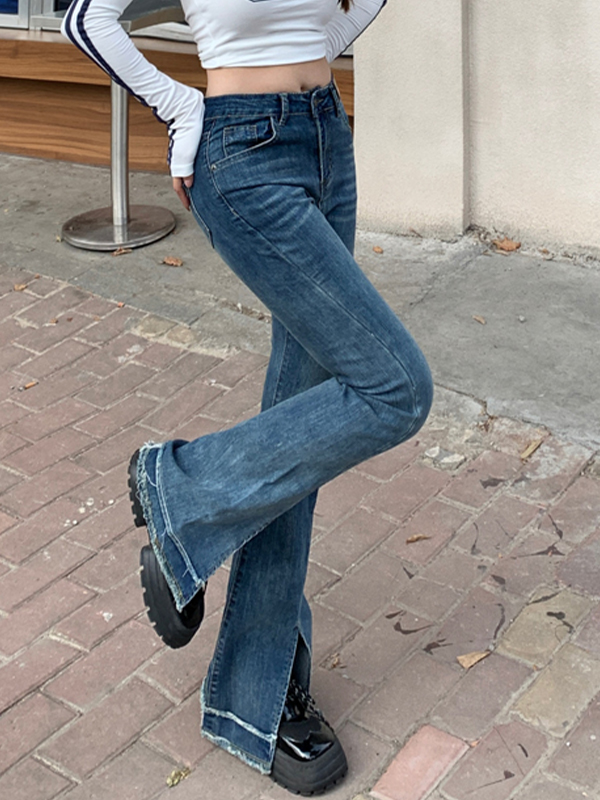 Jeans acampanados con aberturas adelgazantes y ligeramente acampanados