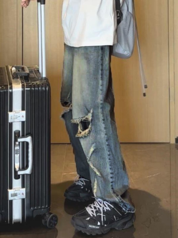 Ajuste holgado: Estos jeans cuentan con un calce holgado que brinda una apariencia cómoda y relajada que es perfecta para ropa casual.< br />Diseño desgastado: el diseño desgastado agrega un elemento único y vanguardista a estos jeans, haciéndolos destacar de otros jeans de mezclilla.