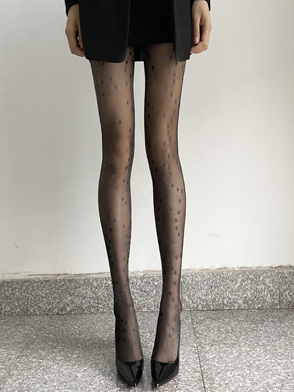 Medias negras transparentes con estampado de estrellas