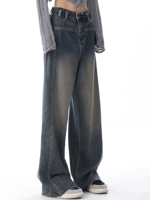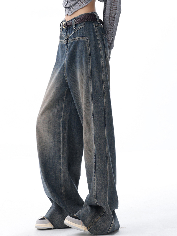 Vaqueros de pierna ancha con bordes sin rematar y lavados