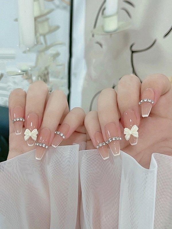 24 piezas de patrón de lazo de diamantes de imitación prensa en las uñas