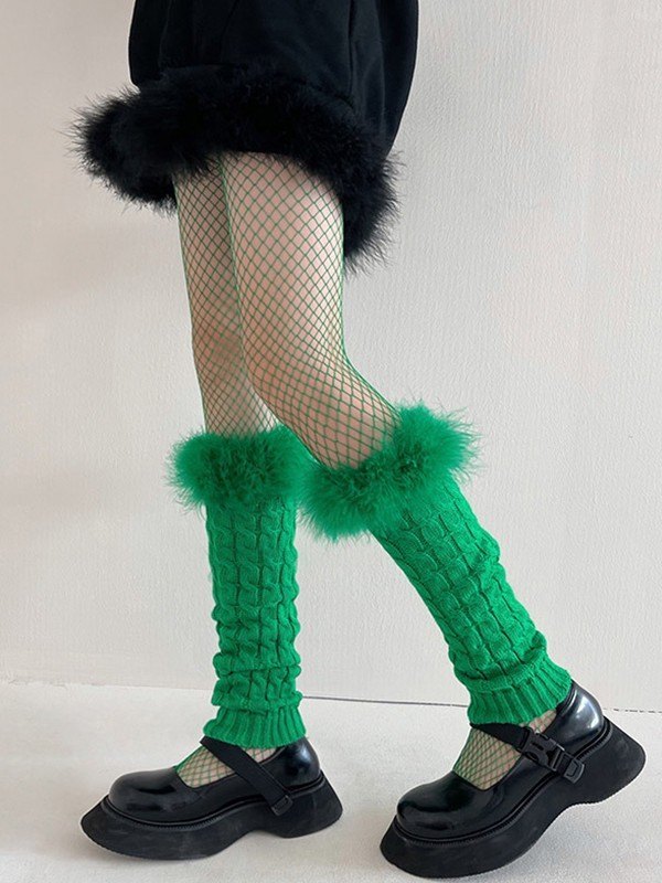 Calcetines de punto trenzado con ribetes borrosos
