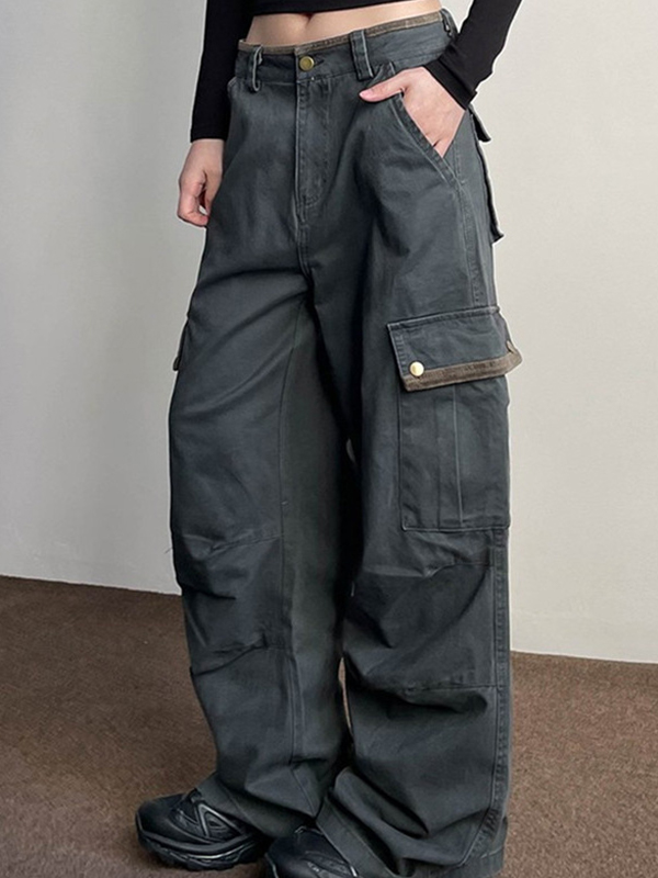 Pantalones cargo rectos acampanados con múltiples bolsillos