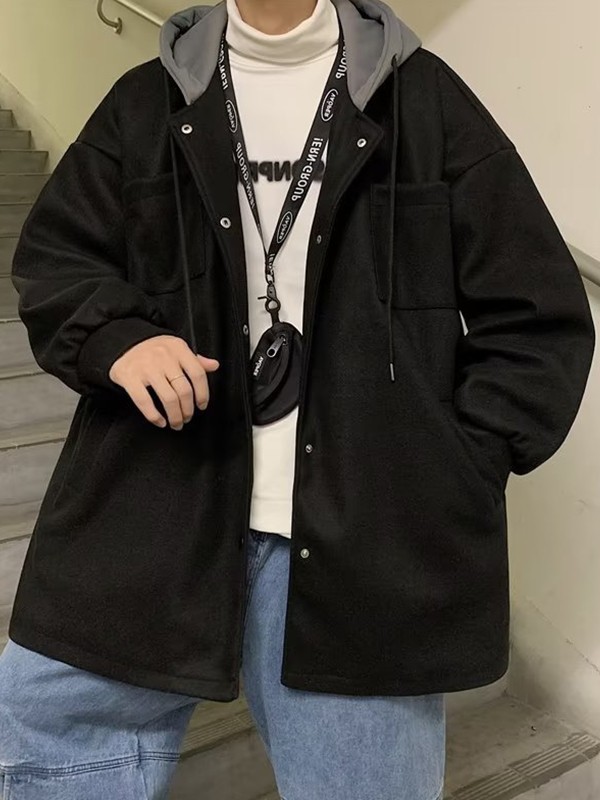 Chaqueta con capucha de mezcla de lana de patchwork para hombre
