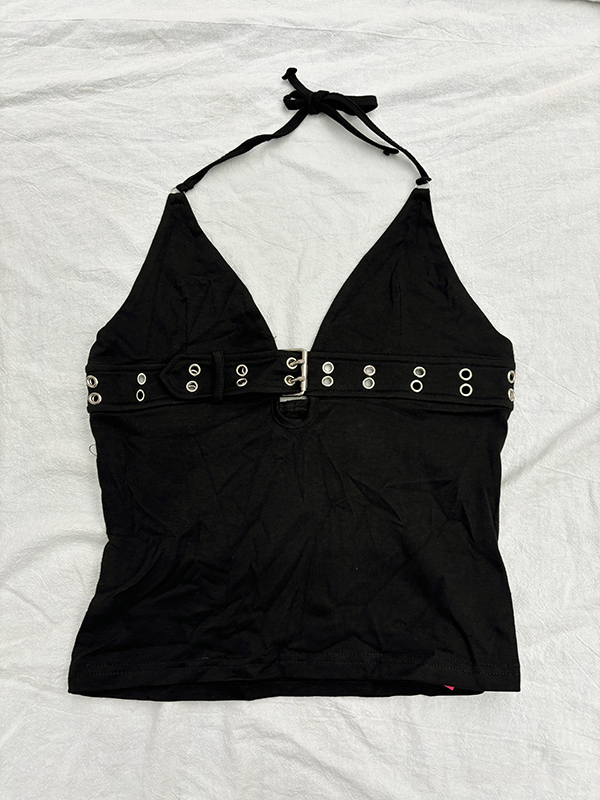 Top corto con cuello halter y tirantes con hebilla