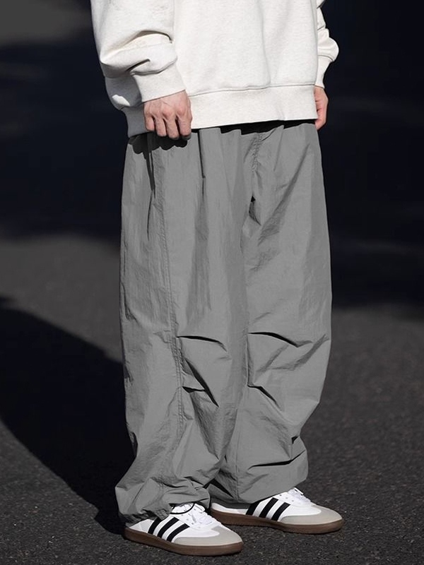 Pantalones anchos de paracaídas con pies atados y fruncidos para hombre