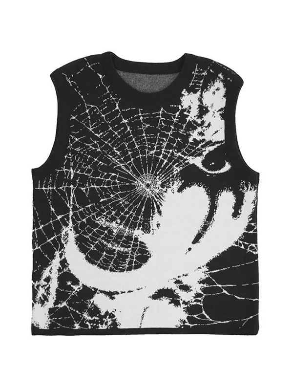 Suéter de punto sin mangas de jacquard con telaraña callejera para hombre