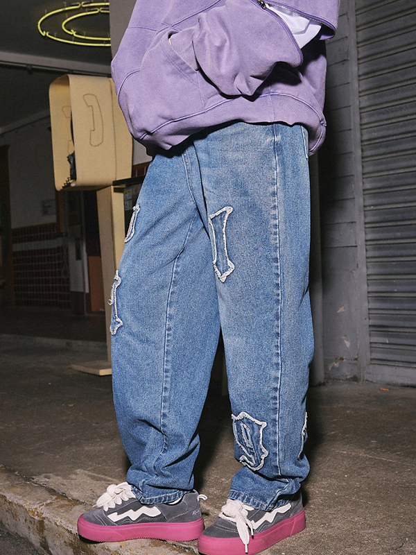 Vaqueros de pierna recta con bordado de parche de letra para hombre