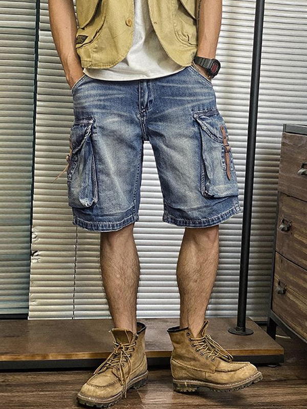 Shorts lavados con múltiples bolsillos para hombre