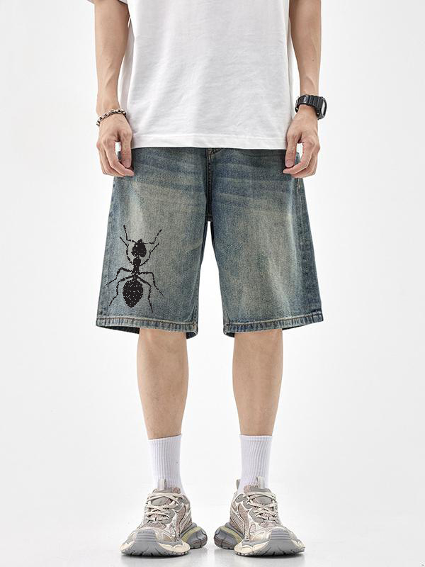 pantalones cortos de mezclilla casuales sueltos con estampado de hormigas para hombre