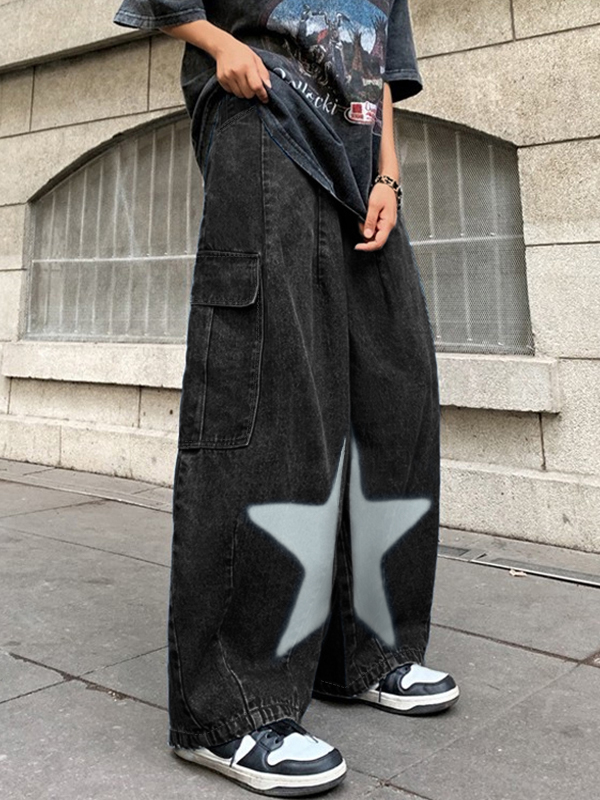 Vaqueros cargo con bolsillo grande y estampado de estrellas para hombre