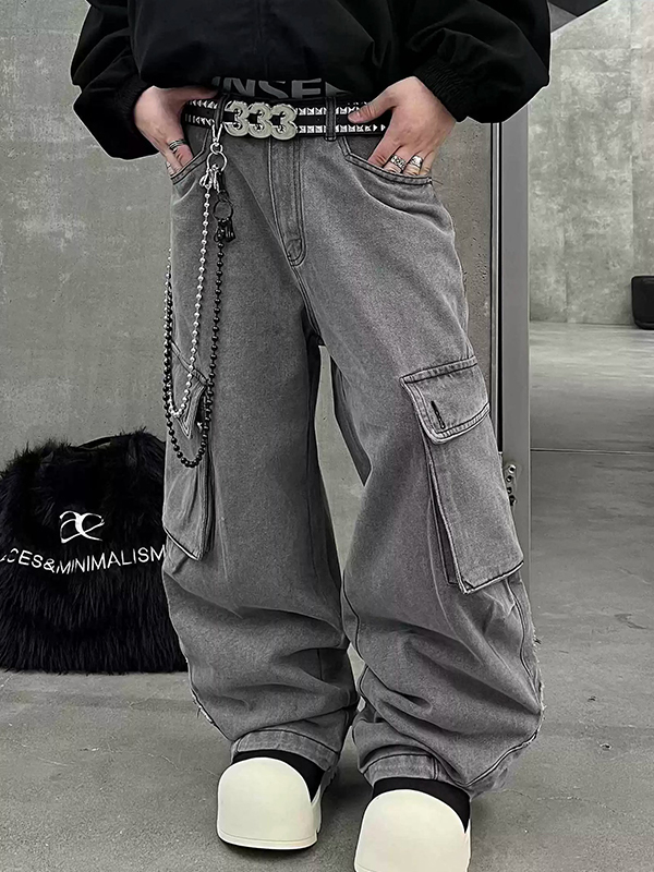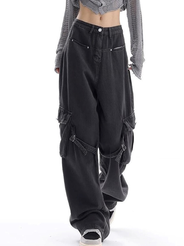 Jeans cargo con múltiples bolsillos y diseño holgado