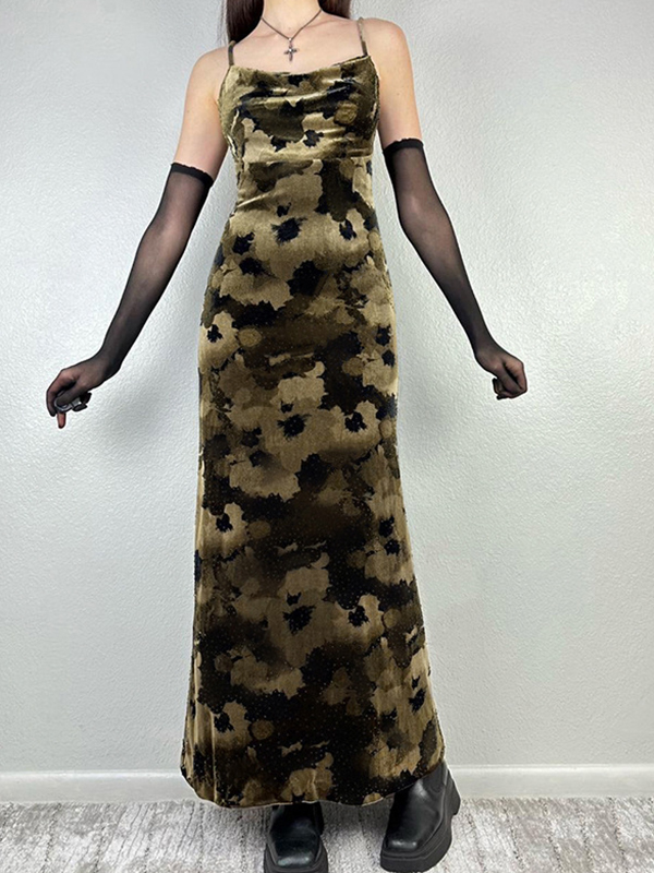 Vestido largo ajustado con tirantes y estampado