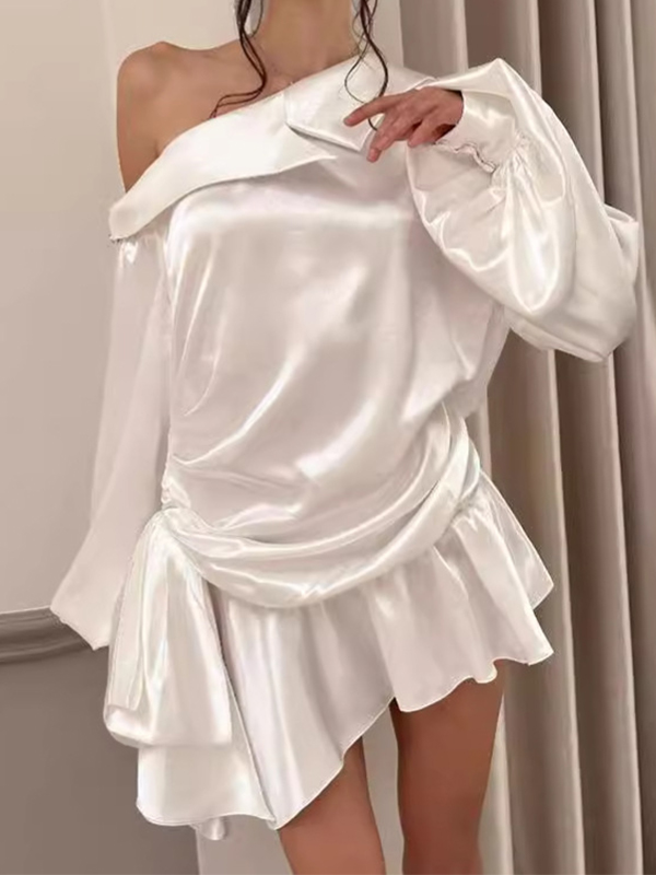 Minivestidos de estilo dulce con cuello inclinado para adelgazar la cintura