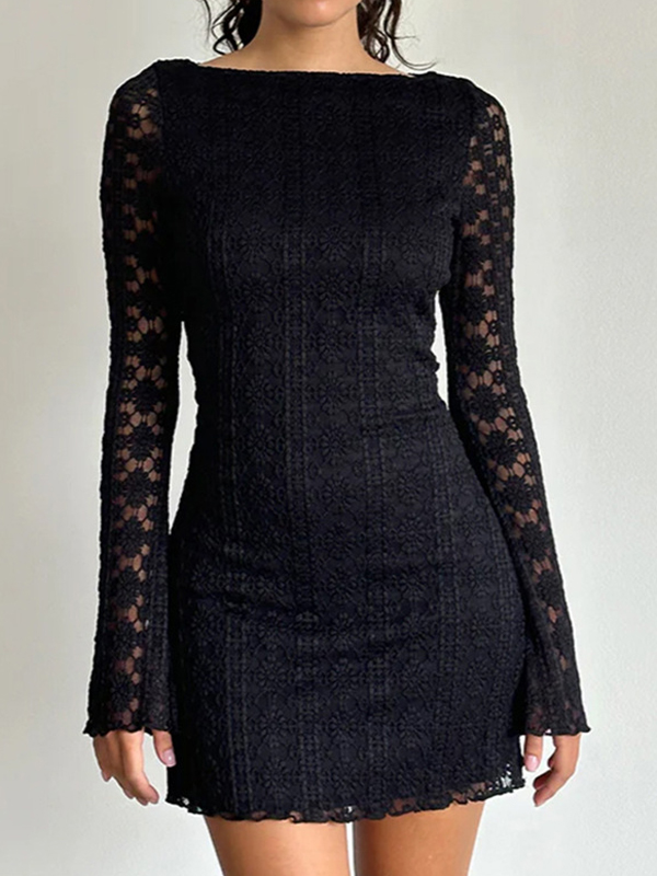 Minivestido de encaje sexy con cuello en V