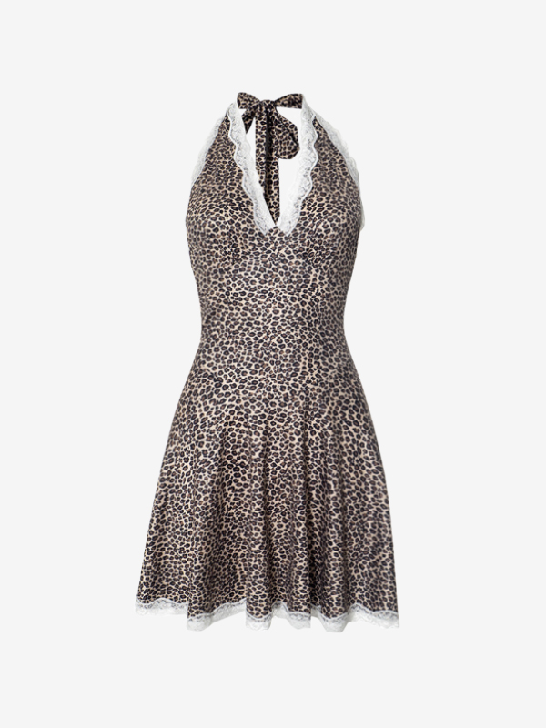 Minivestido de encaje con cuello halter y escote en V