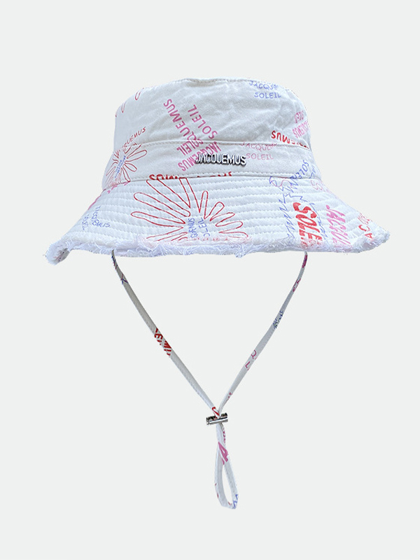 Sombrero de pescador a prueba de sol con ribete crudo y estampado colorido lavado
