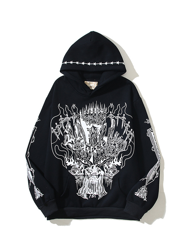Sudadera con capucha de manga larga extragrande con estampado de terciopelo oscuro para hombre