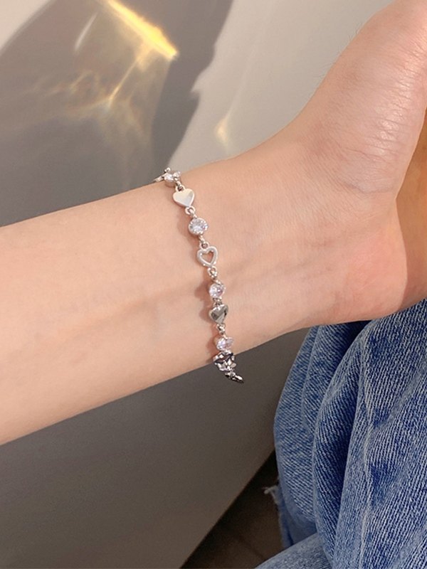 Pulsera con dije de corazón de diamantes de imitación