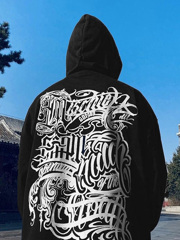 Sudadera extragrande con capucha y estampado desorganizado para hombre