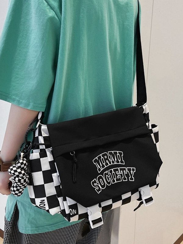 Bolso bandolera de nailon a cuadros con correa de hebilla